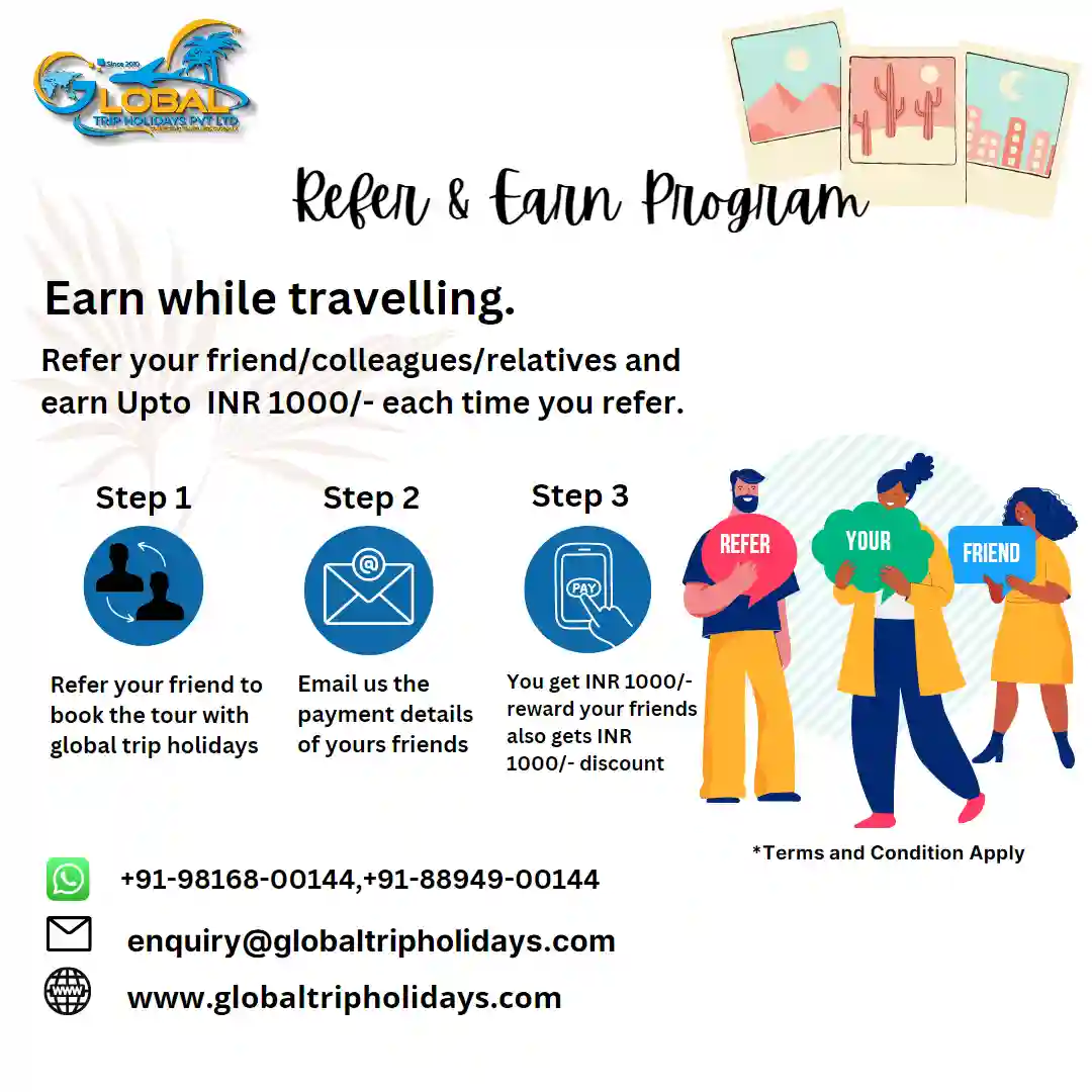 Earn while travelling. Refer your friend/colleagues/relatives and earn Upto INR 1000/- each time you refer.