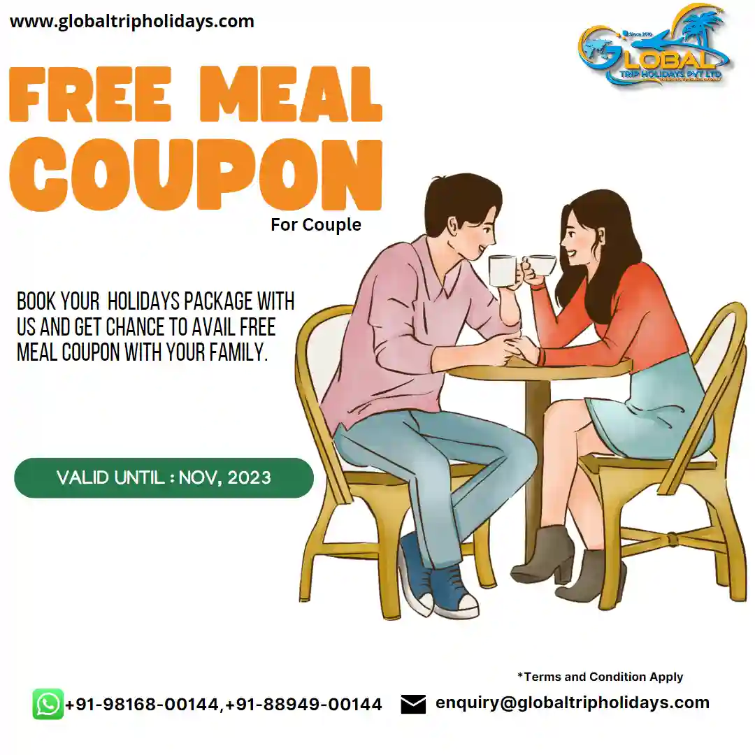 Book your holidays package with us and Get chance to avail Free meal coupon with your family.